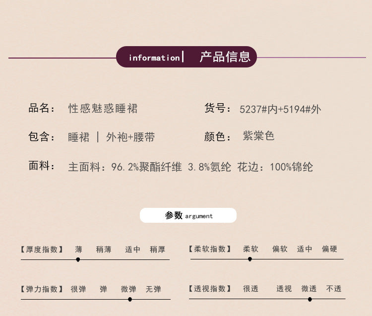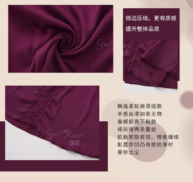 DZ Elegant Plus Size Women's Ice Silk Nightgown Deep V Gathered Padded Pure Desire Lace Nightdress and Robe Set5237