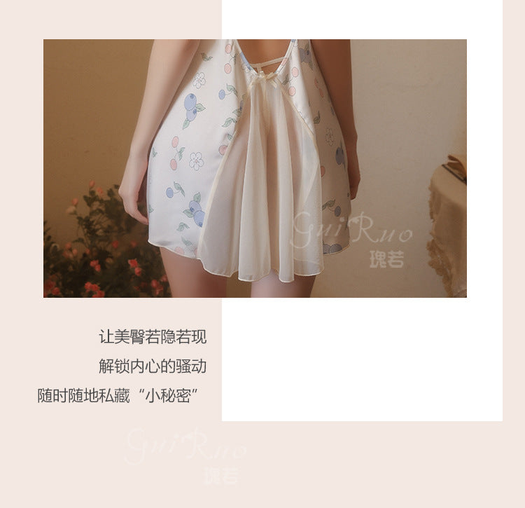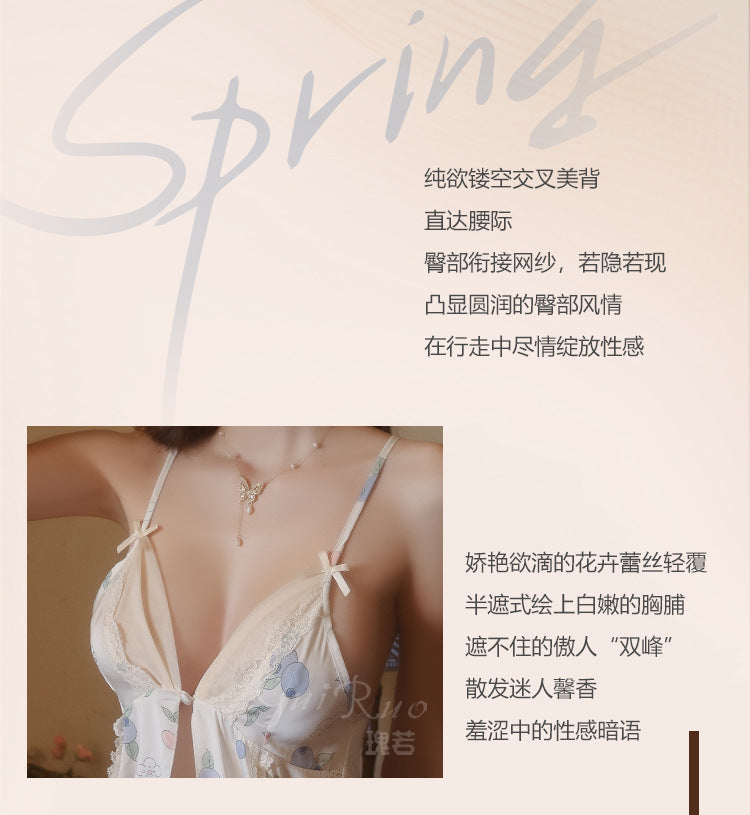 DZ Gorgeous Pure Desire Printed Satin Nightdress Passionate Hot Backless Sexy Open Front Plus Size Camisole Dress Set5140