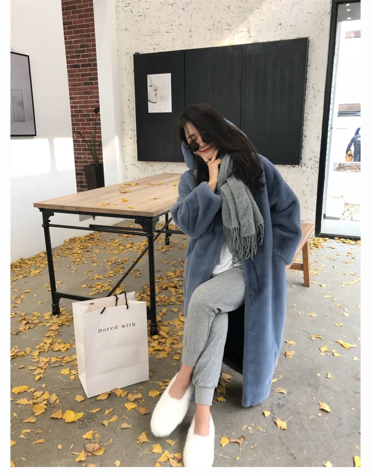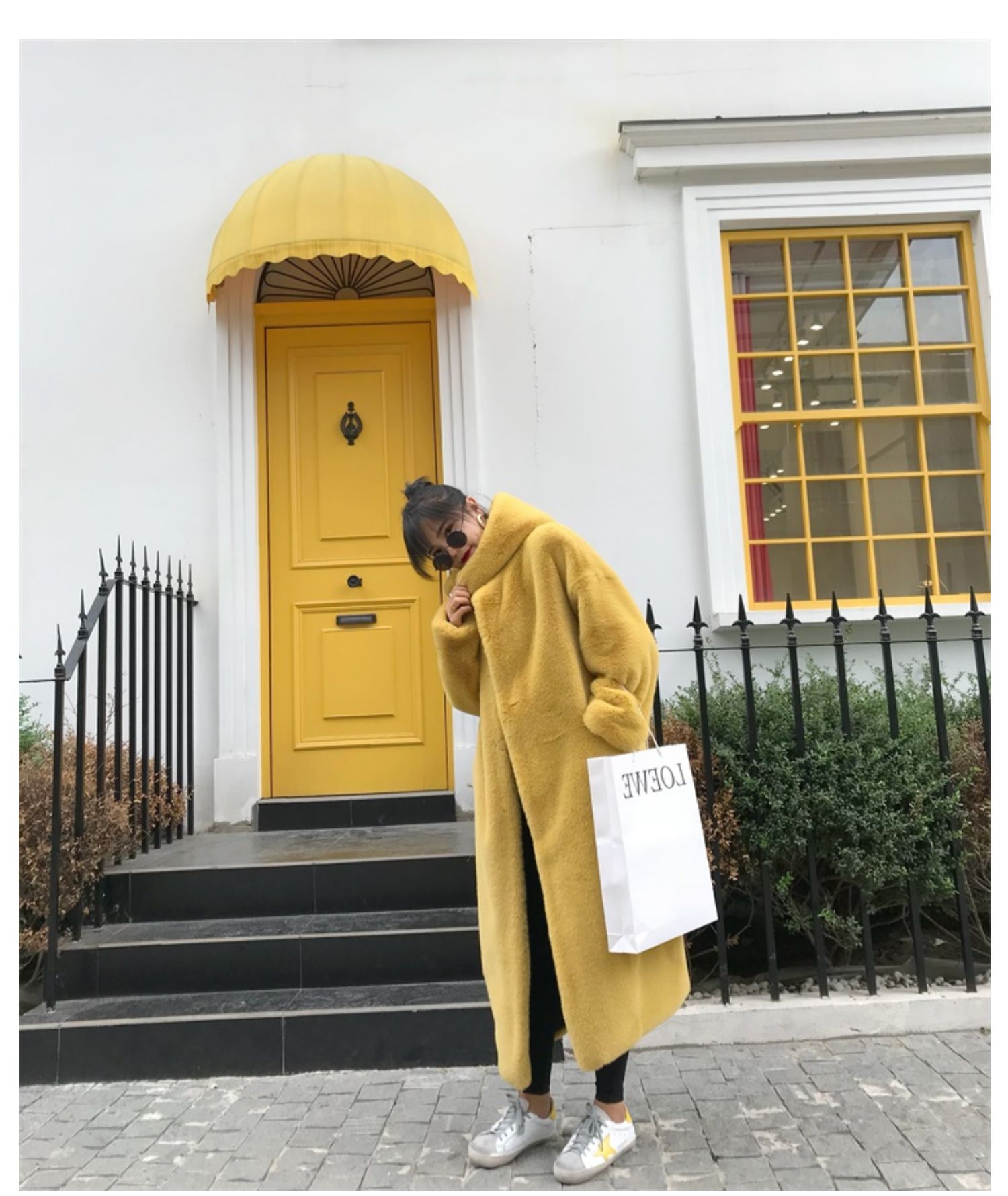 New Korean version of mink fur thick loose plush hooded long coat.