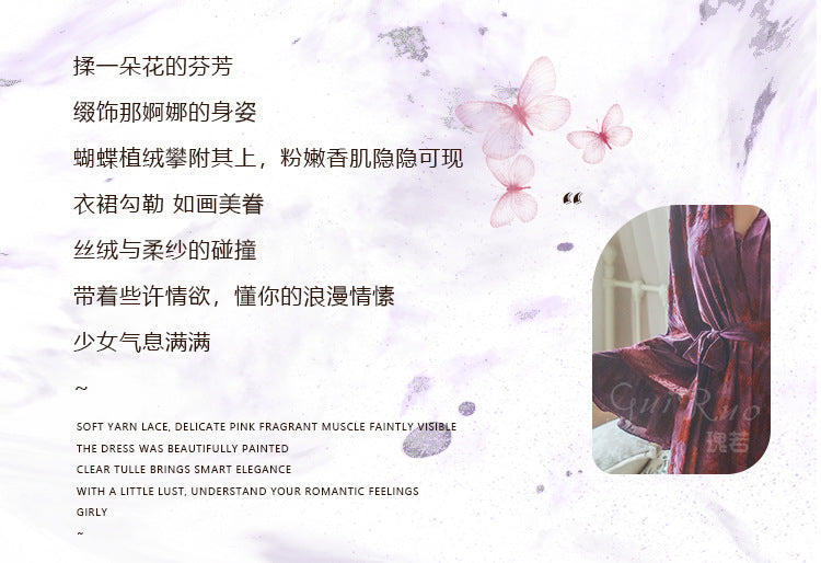DZ Gorgeous Sexy Backless Nightdress Pure Desire Sweet Butterfly Print with Chest Pads Sleepwear Robe Women's Set QJ5286
