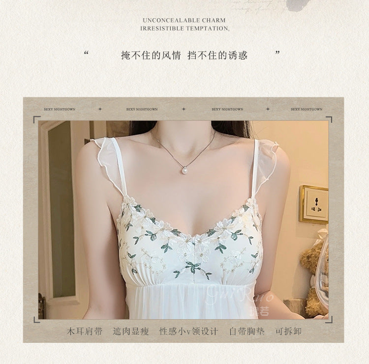 DZ Gorgeous Sexy Nightdress Passionate Temptation with Chest Pads Hot See-through Chiffon Lace Nightgown Robe Set5148
