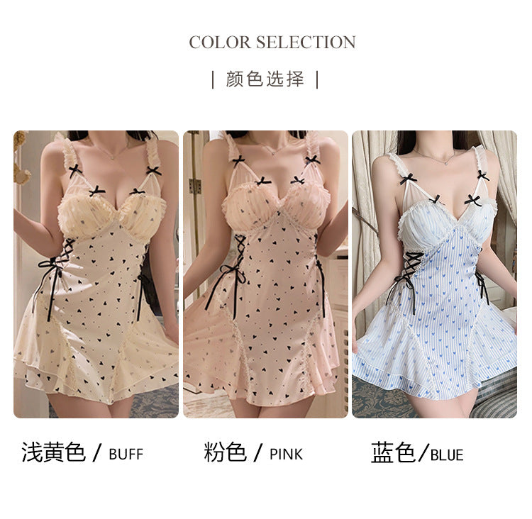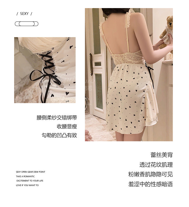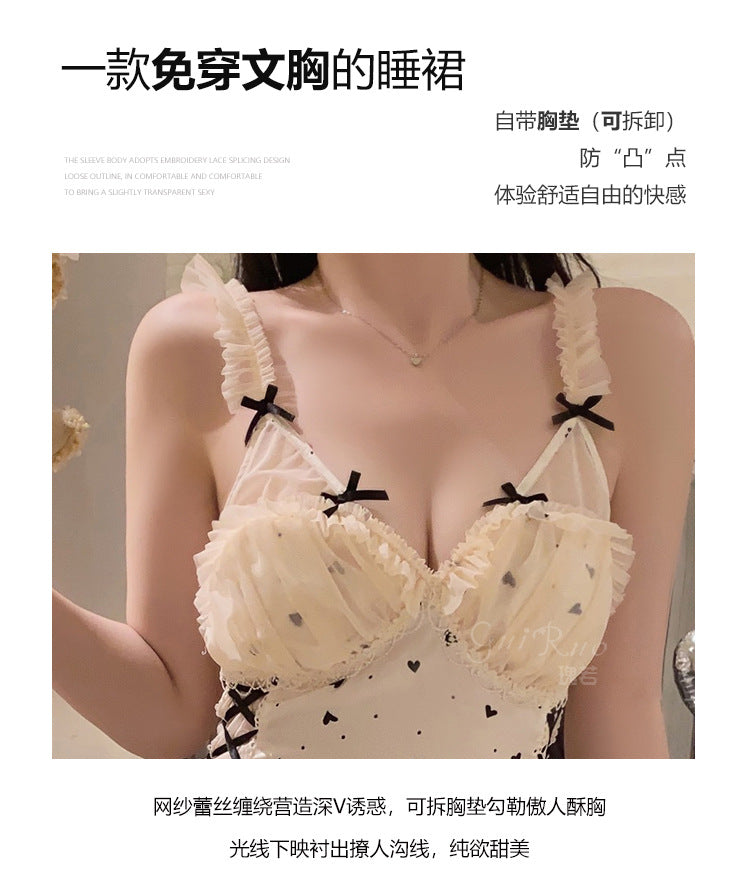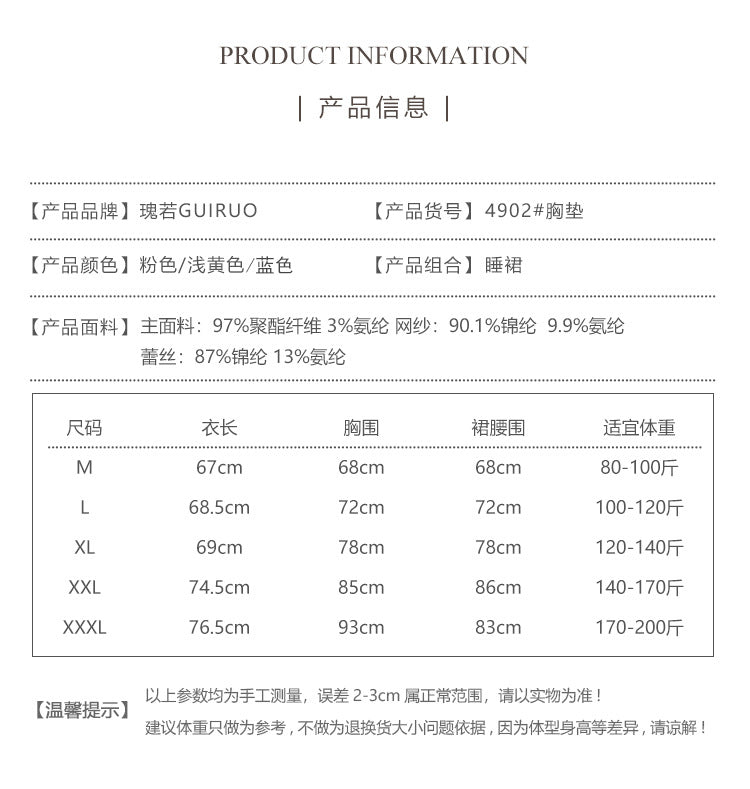 DZ Gorgeous Sexy Nightdress Pure Desire See-through Lace Hot Slim Fit with Chest Pads Plus Size Nightgown Home Set4902