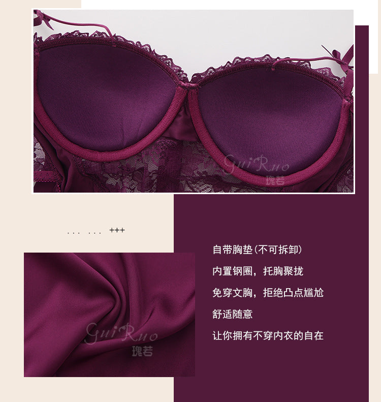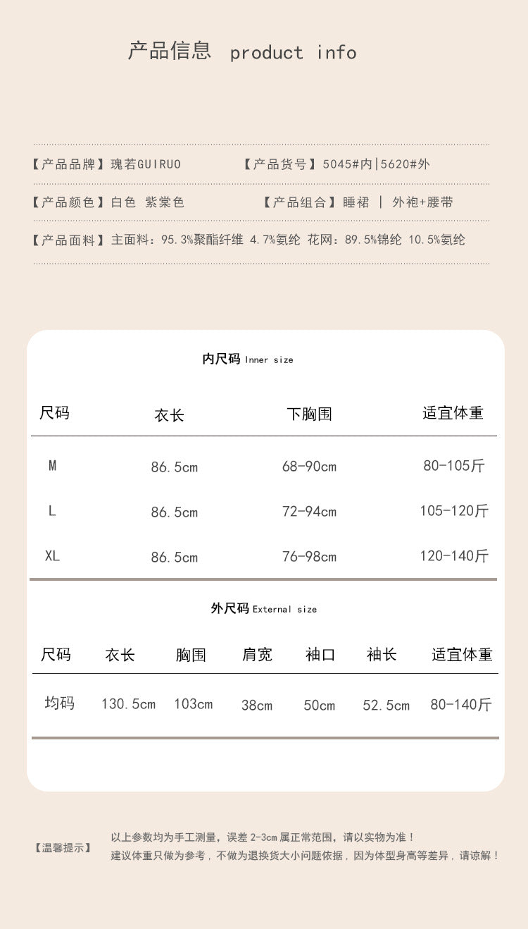 DZ Gorgeous Sexy Satin Nightdress Light Luxury Sweet Lace Deep V Gathered Padded Nightdress and Robe Set5045
