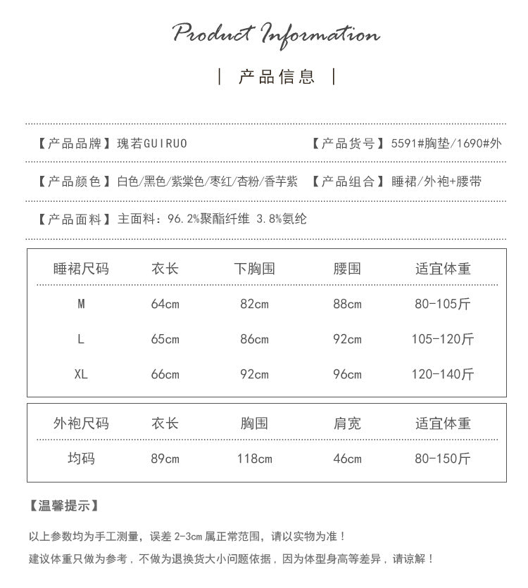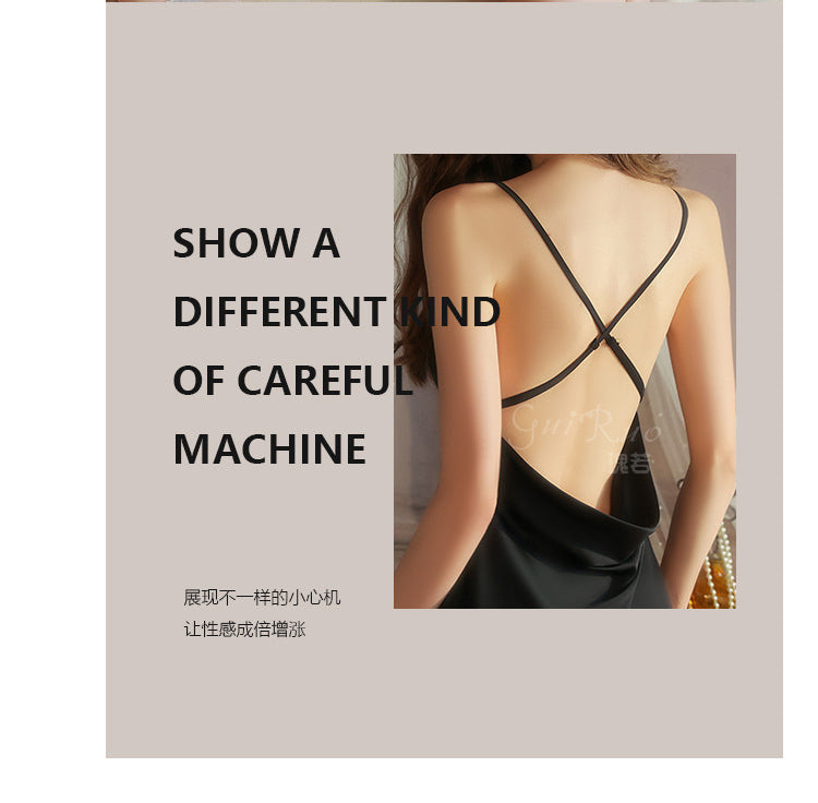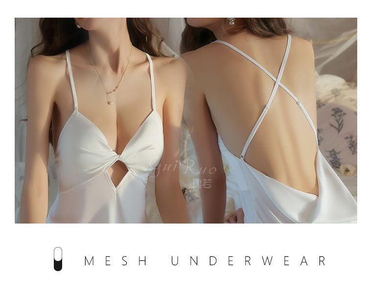DZ Graceful Lady Sweet Light Luxury Satin Lingerie Passionate Hot Chest Pad Backless Nightdress Robe Set5591