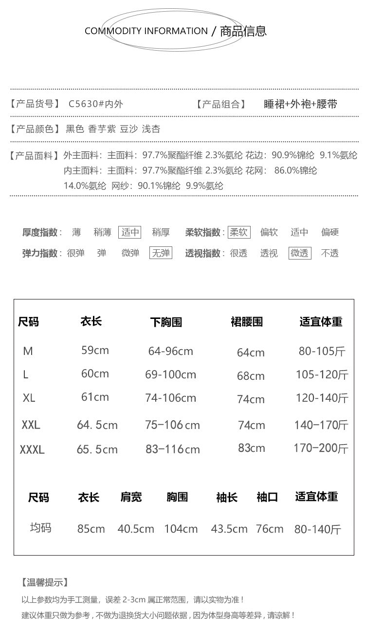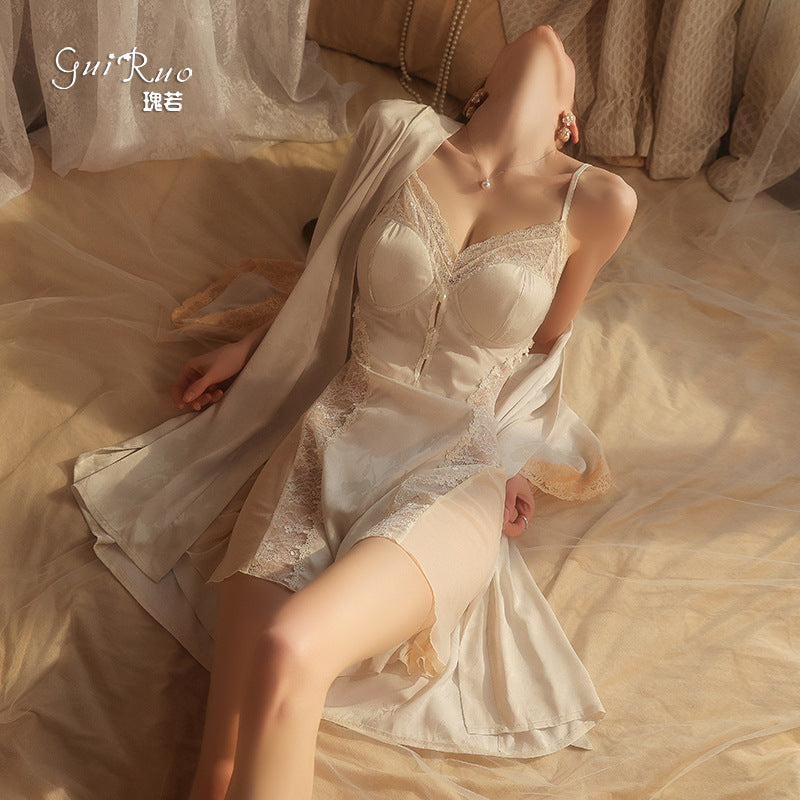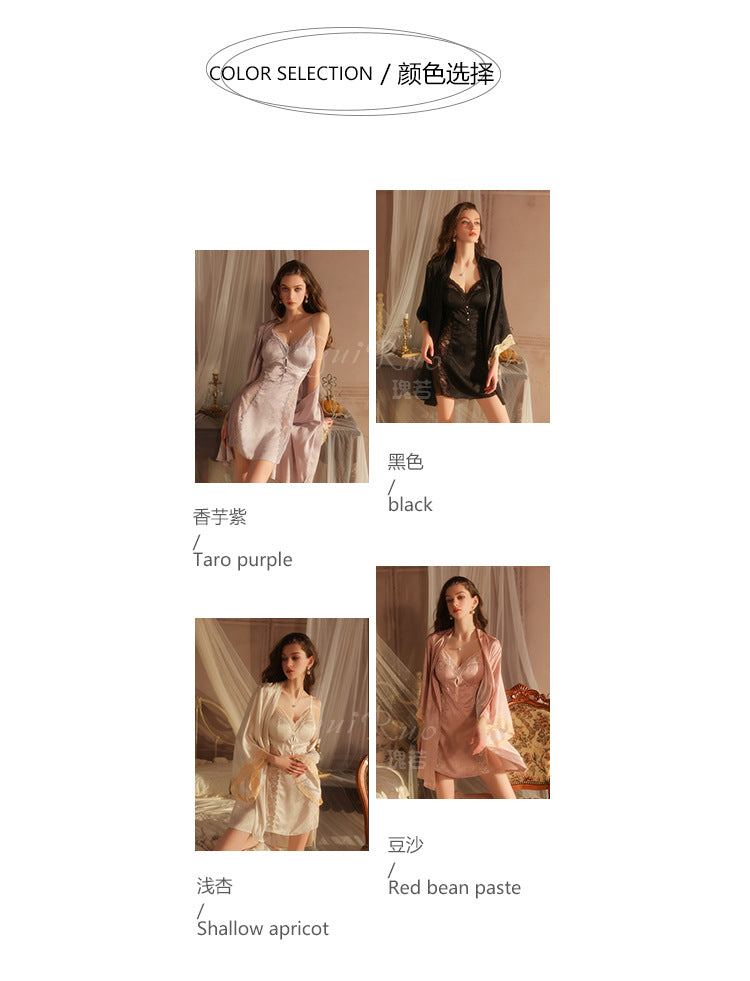 DZ Magnificent and fiery deep V Padded Bra Lingerie Pure Desire Backless Sexy Jacquard Nightdress Robe Home Set C5630