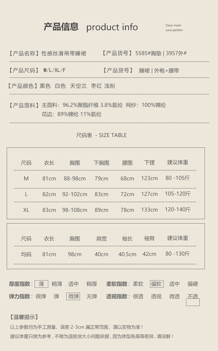 DZ Magnificent and fiery deep V Sexy Backless Lace Smooth Satin Nightdress Set with Chest Pads5585