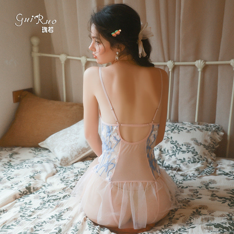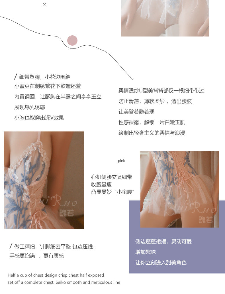 DZ Magnificent and Sensual Lingerie Sexy Deep V Backless Hot Gathered Underwire See-through Mesh One-piece Set5242