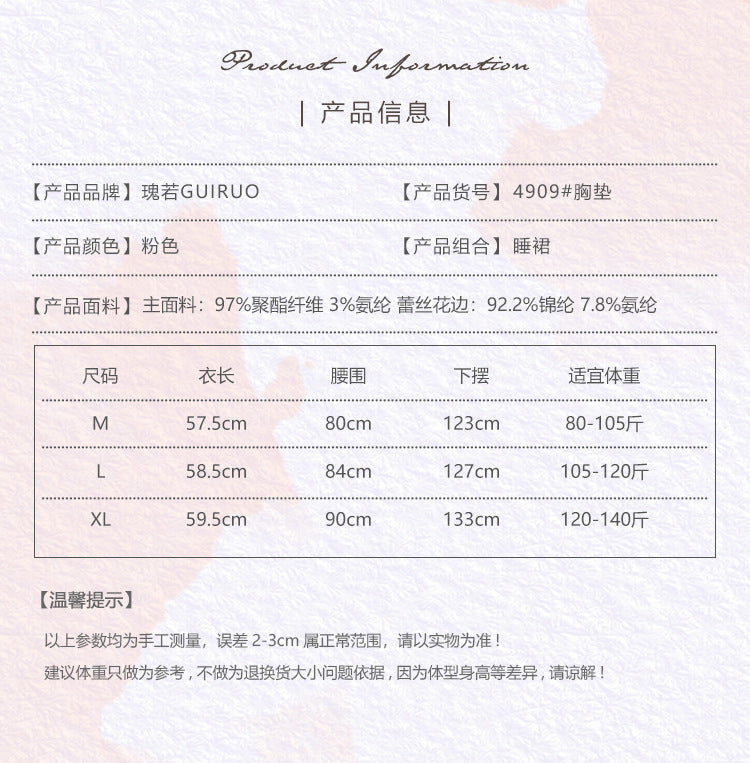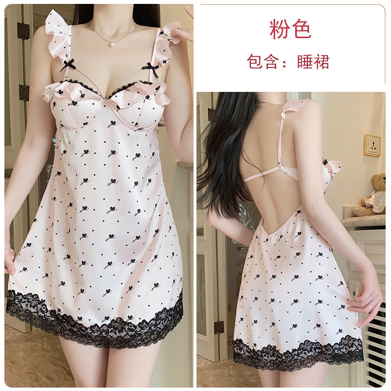 DZ Magnificent and Sexy Deep V Backless Nightdress Pure Desire Temptation with Chest Pads Sweet Ice Silk Nightgown Plus Size Set4909
