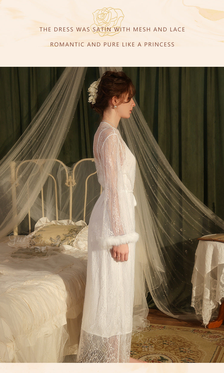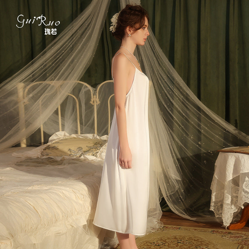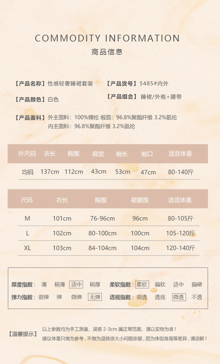 DZ Magnificent Pure Desire Backless V Lure Collar Ice Silk Camisole Nightdress Mesh Robe Women's Homewear Set5485